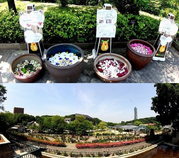 水面にお花を浮かべて飾る「フローティングフラワー」の展示を、 5月16日(火)から5月28日(日)までの間、星が丘広場と洋風庭園(圭介の庭)にて展示しています。
