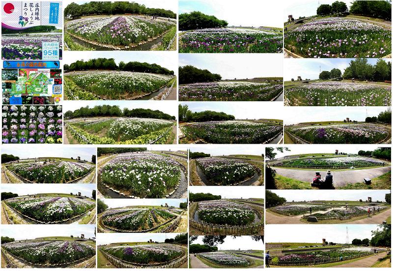 庄内緑地公園・菖蒲祭り こちらも今日から本格的な梅雨に入りました、今年の梅雨はどういう傾向でしょうか!! ・今年は菖蒲の花は1週間くらい遅れて、祭りの当日でもまだ半分くらいしか咲いてないとかで、次の週に行きましたが満開でしたが、今年は昼の気温が高く、花が終わり近のが結構ありました。ハナショウブ園には95種・約18,000株のハナショウブが植えられています。ここは他の場所に比べると例年ですと1週間くらい遅めですが、ほぼ満開状態でした。ここの菖蒲は池が南と北に分かれて、南側は苗の生育用で、こちらで育てて北側に植え付けるようになっていますが、養生池の植え方が変えてあり新しい種類の花も植えてあります。 他の花では泰山木や柏葉紫陽花がきれいに咲いていましたが、紫陽花はまだ色づきが悪かったですね。