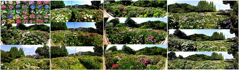 東海地方は、6月7日ごろに梅雨入りで、 今年の梅雨入りは平年(6月8日ごろ)と比べ1日早く、昨年(6月4日ごろ)と比べ 3日遅くなりました。 今年は梅雨入りは北陸・東北を除いて、全国一斉という感じでしたが、その後、雨がなかなか降らず気温が高くて、アジサイなどは水不足の感じで、元気がなかったですね。 花園橋横の通路にそって紫陽花が咲いていますがここは日当たりも良くて色付きはいよかったですが、今年は花数が少なめでしたね。