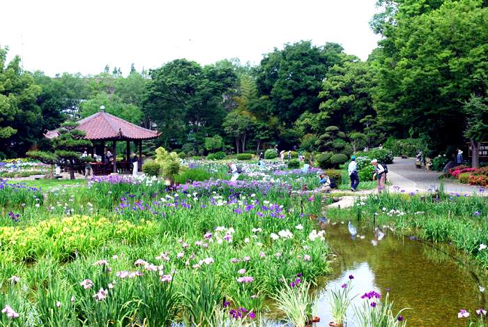 城北菖蒲園は、昭和39年5月に開園しされた回遊式の菖蒲園で、 面積約13,000平方メートルの敷地に、江戸系・肥後系・伊勢系の三系統の「花菖蒲」約250品種、を栽培しています。 大阪市以外の方は、菖蒲園の入場料は大人一名が200円ですが、よく手入れされていて、楽しい菖蒲園です