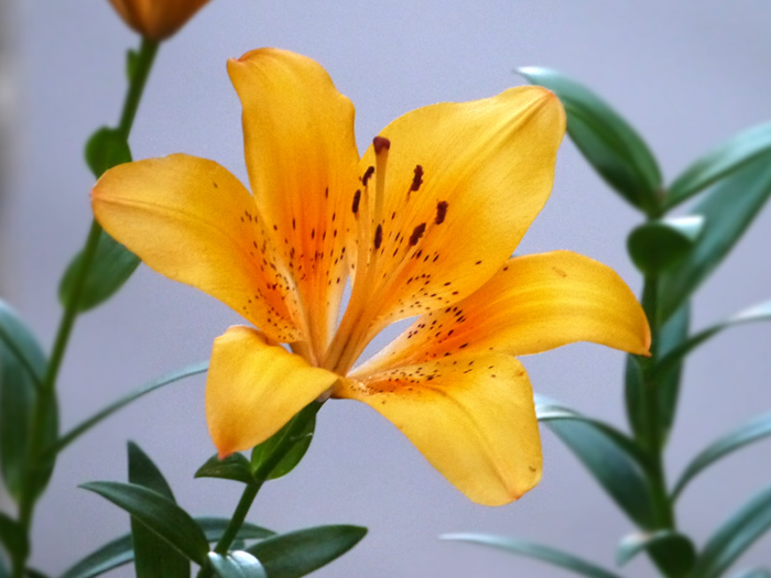 庭で「百合」のお花を パチ /■\_・)