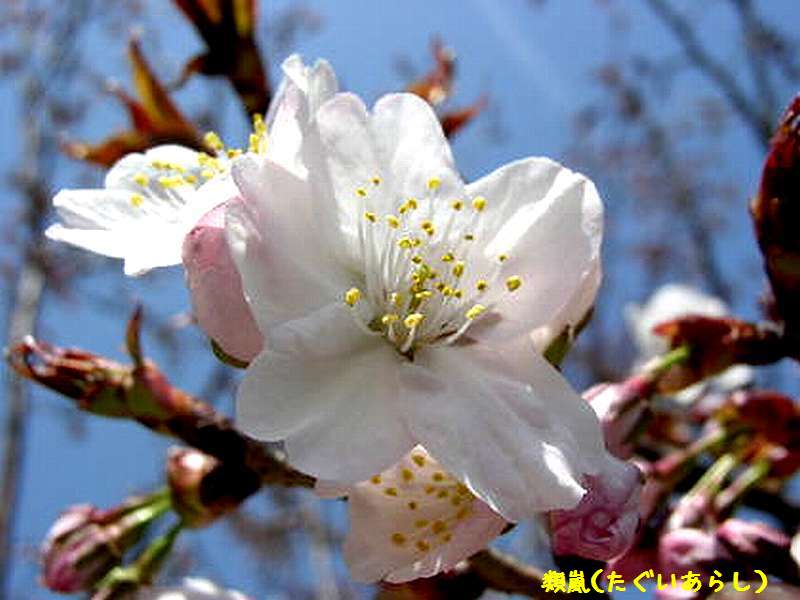 大阪造幣局の「桜の通り抜け」の今年やっと名前が判った、サクラ・類嵐(たぐいあらし)も かわいいさくらです。桜の通り抜け、133年の歴史のなか、今年になってようやく品種が解りました。 「類嵐」は、東京荒川堤にあった桜で、花は白色の一重で、花弁数は染井吉野と同じ5枚です。 荒川堤から広まった桜とされますが、名前の由来は不明です。 一重大輪の爽やかな白色の花びらが特徴です。 これで大阪造幣局のすべての桜は133品種となり、今年は、晴れの舞台で349本が大歓迎してくれました。