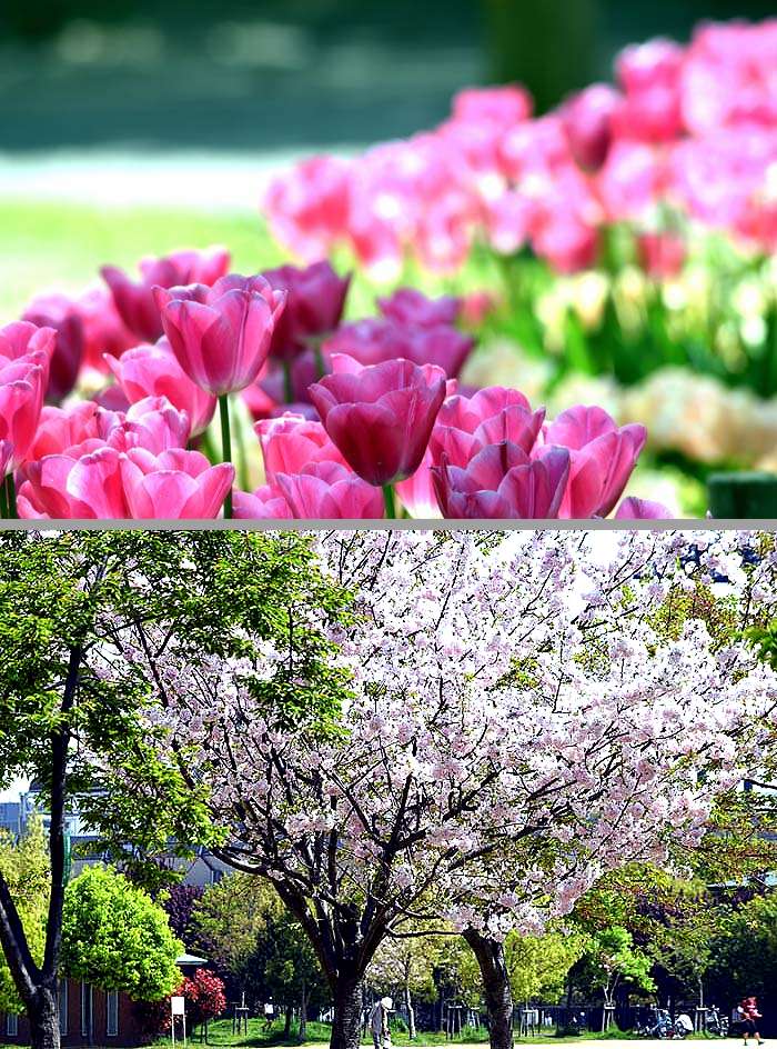 チューリップもまだ八重桜も綺麗に咲いています。