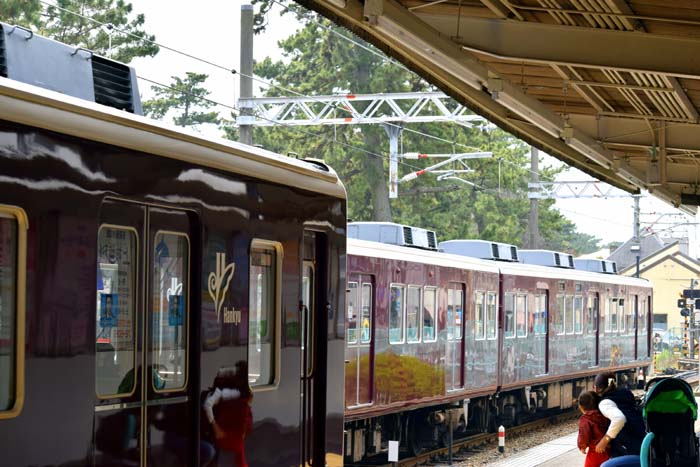 私達の宝塚も今は染井吉野が満開で、春爛漫です。 先日の夙川公園は、私たちの宝塚からは、阪急電車で約20分で、夙川駅で降りて、川沿いに北へ上がっていくのもイイですが、 私たちは、まずはソメイヨシノが咲き誇るど真ん中・苦楽園口まで直行しましました。 夙川駅からは支線の甲陽線に乗り換えになります。特急電車とは連絡が良くすぐに発車します、 私たちはホームの成城石井でお弁当や飲み物を仕入れ電車に1駅だて乗りました。 もう電車の中は花見客で一杯です。