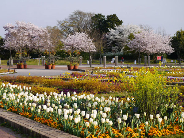 白いチューリップと、桜が・・・・素晴らしい