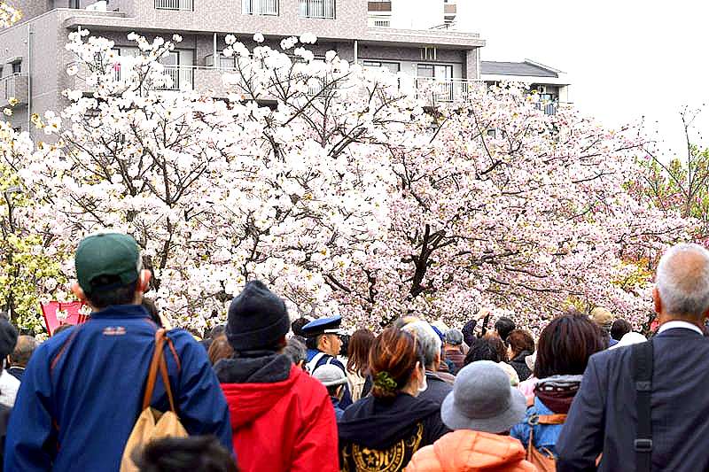 お花見客で満員の電車と、夙川公園についてのPhotoのお届けを嬉しいです(@^▽^@) ♪(*^・^)ノ有難う〜♪ ⌒☆(*^_^*)
