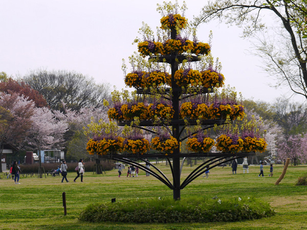 私たちはよく晴れた5日に神戸の王子動物園へ朝早く行ってきました 沢山の人達と、動物たちや、満開の桜の花を楽しんで来ました。 先ずは入り口付近の沢山のフラメンコにビックリしました。