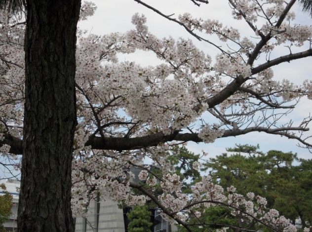 ソメイヨシノの花も昨日の雨と今日の風で散り始めました。