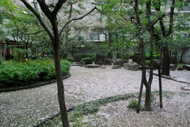 きのう夕方にパチリしたマンション中庭の桜の絨毯です♪
