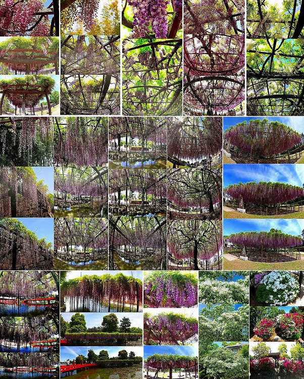 津島・天王川公園・藤まつり かつて津島市は「藤浪の里」といわれたほどの藤の名所。その名残を今に伝えるのが、毎年4月下旬から5月上旬にかけて行われる「尾張津島藤まつり」です。会場となる天王川公園には、長さ275m、面積約4,550平米の見事な藤棚があり、まつり期間中、夜間はライトアップされています。 今年は3月から気温が高くて、全般的に色々な花が早く咲いて、例年ですとGW頃が見ごろなんですが今年は10日くらい早くて、私が見に行ったときは殆どの藤が咲いて早咲は終わっていましたね、ポスターは例年通りの日付になっていますが、実際には早くやっていましたね。江南などはもっと咲くのが速くて、終りに近いと聞いてましたので今年はあきらめました。
