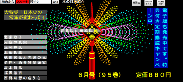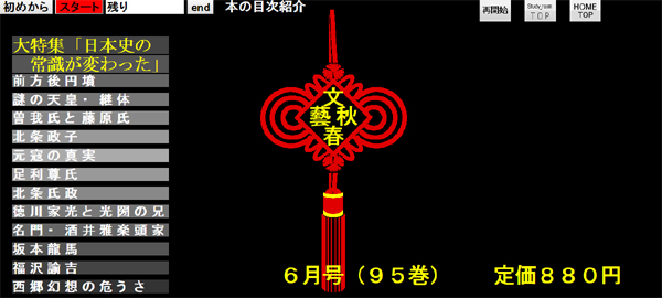 | 2018/8/19 | 文藝春秋6月号(95巻) 97_bunshuu3_design_9.html 完成 Google Chromeに対応 Google Chromeで閲覧して下さい |