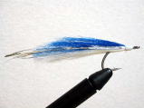 今回は、青と白のカラーで巻きましたが、単色で巻いたり、各ウイングの色を変え、グラデーションを付けると美しいフライが巻けると思います。