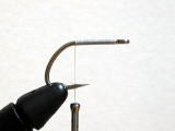 - テール材をフックシャンクに巻き止める。