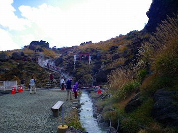 須川温泉の足湯場を通り、源泉を過ぎていきます。