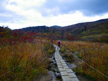 栗駒山は、前回いわかがみ平から、だんべえさんやmakotoさん、スカイさん達と登りましたが、特に赤が素晴らしい紅葉でした。