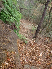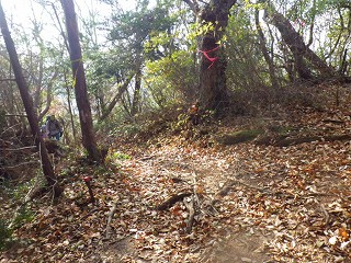 岩はあまり滑りませんが、ロープ場、、鶏冠山方向