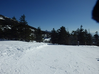 10:35=10:45 山頂駅(2237m)に着いてみると、、踏み跡がしっかりあって、スノシューは要らなさそうで、ツボ足で向かいます