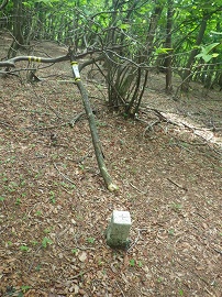 そのまま尾根を降ると、、コンクリートの壁に、、、。