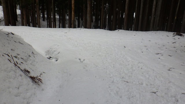 雪があまりにも少なく、トレースも先に延びていたので、少し先に行くことに