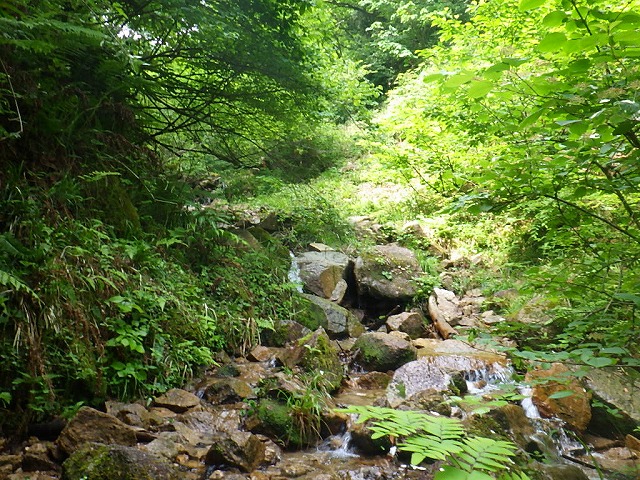 10:50=11:30 ランチ〜11:40 駄口分岐〜11:50 P708m ブナ林〜12:00 崩壊地〜12:00 P677m辺り〜12:10 下山地見えた〜