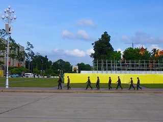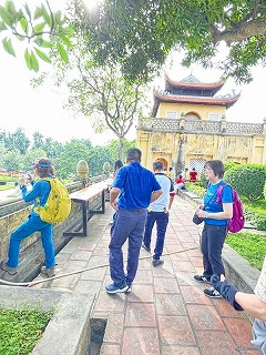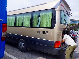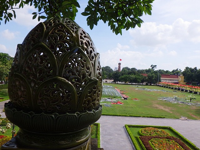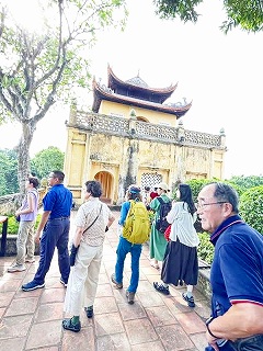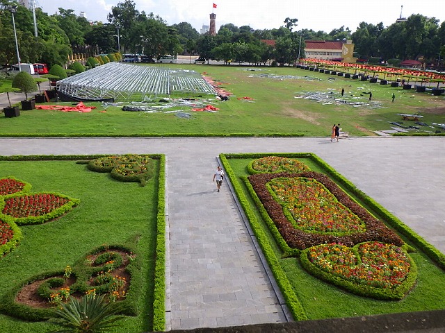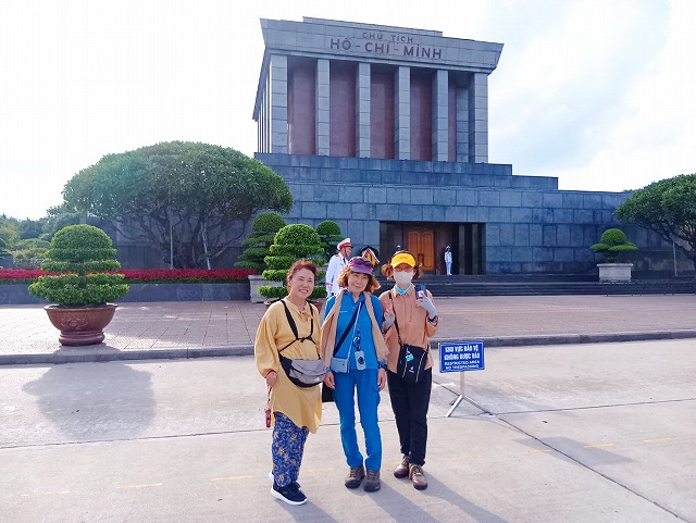時差2時間〜14:00 出発〜14:05 ワゴン車〜14:50=16:05 タンロン遺跡見学〜16:05 ワゴン車〜16:10 ホーチミン廟〜16:30 一柱寺〜16:35 ワゴン車〜17:00 下車、歩き〜