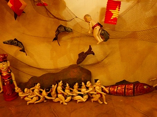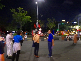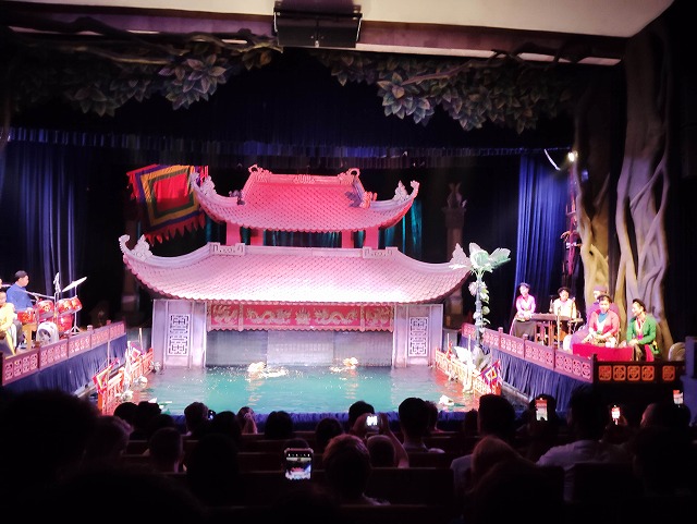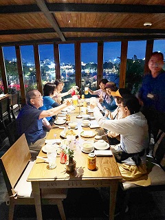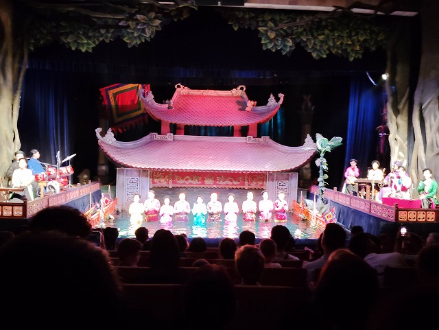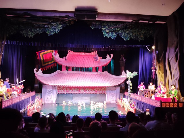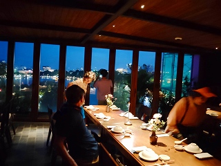 17:10=18:10 水上人形劇鑑賞〜18:20=19:35 カウゴーレストラン 夕食〜20:00 教会〜20:05 コンビニ〜20:20 ワゴン車〜