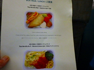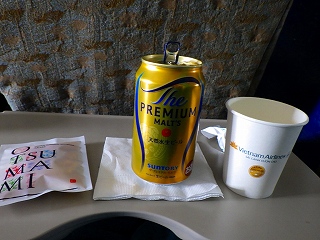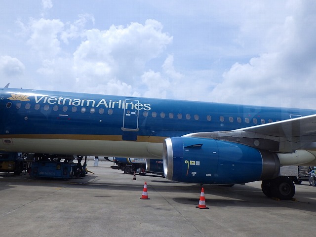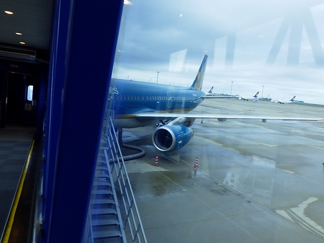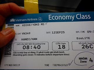 9:30 出発〜ベトナム空港 VN349便 26c〜機内で 10:30 つまみとビール〜11:40 ランチ〜12:00 コーヒー〜12:40 着陸態勢〜12:55 ハノイ空港着〜入国手続き〜
