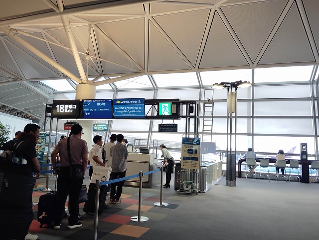 7:35 搭乗手続き開始して、機内荷物を預けます