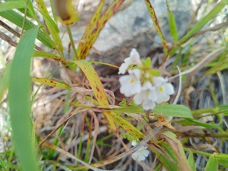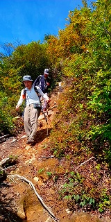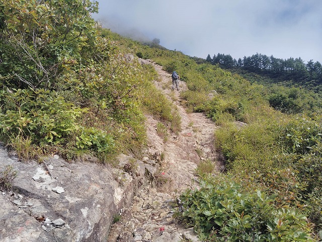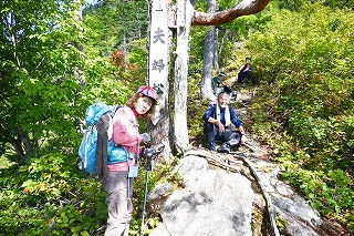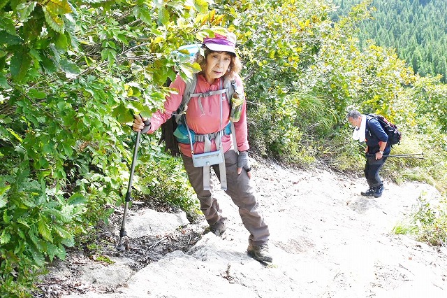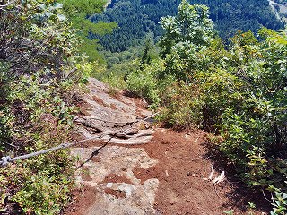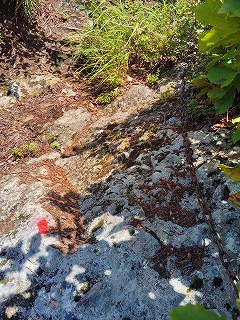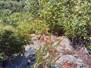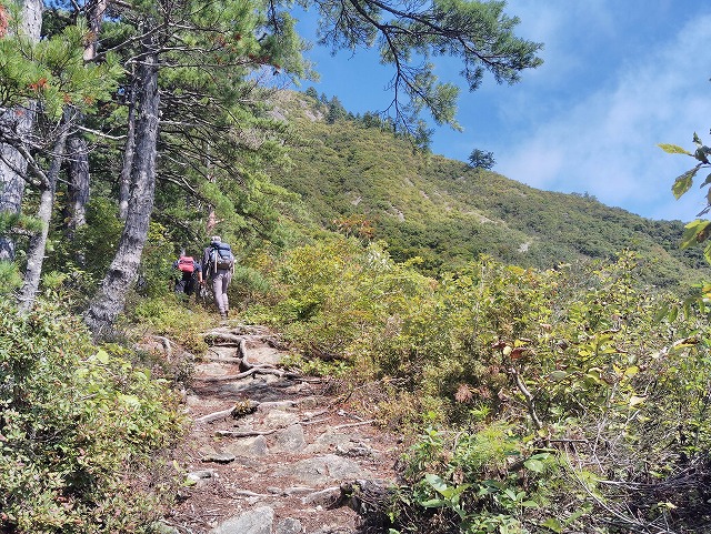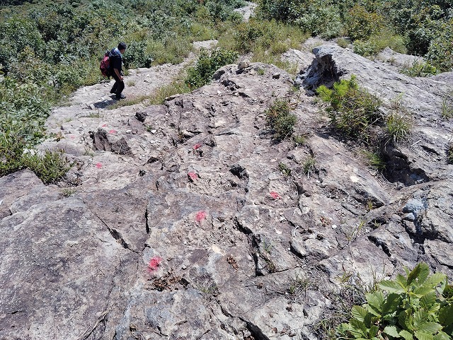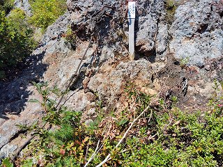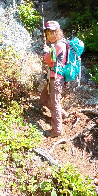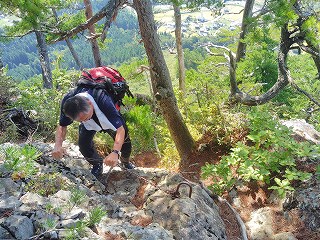 10:05 岩場〜10:20 分岐 時計回りに〜トラバース〜ロープ〜10:24 危険 看板〜10:26=10:35 家族松 休憩〜岩場〜