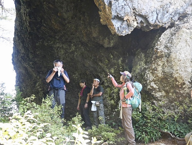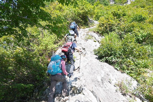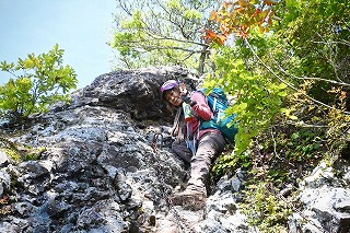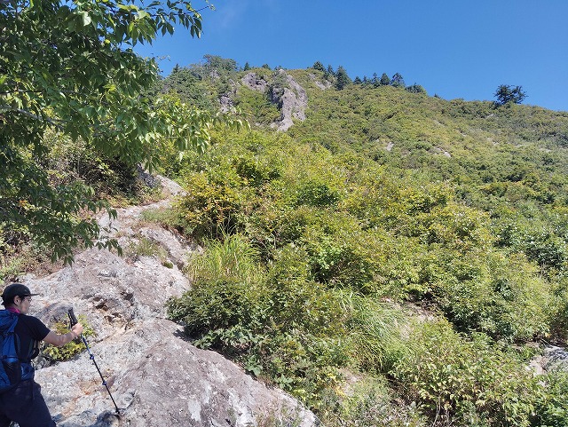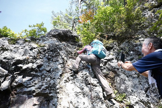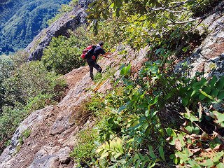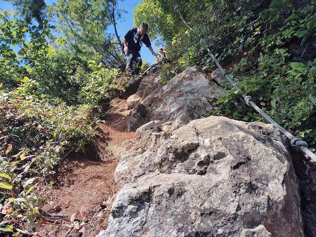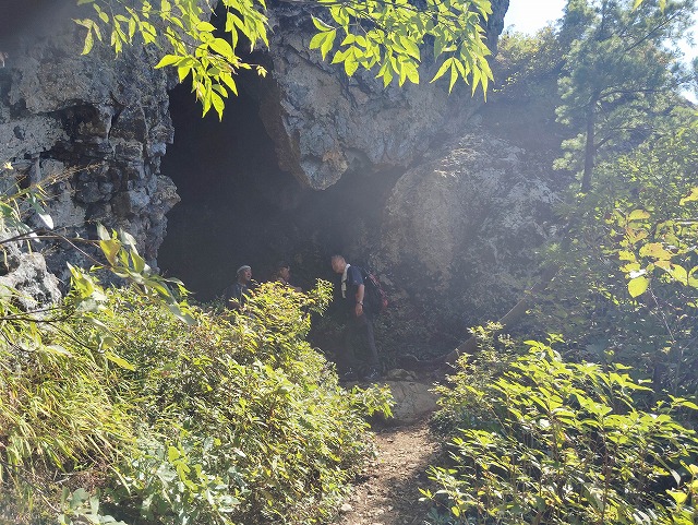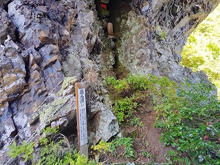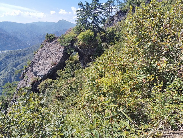 10:45=11:20 山頂 休憩〜ロープ場〜11:35 鼻毛通しが見えた〜11:45=11:50 鼻毛通し 休憩〜トラバース〜