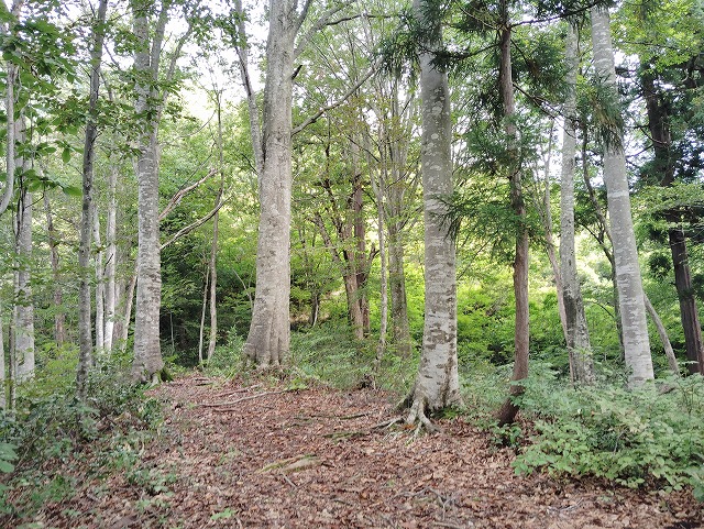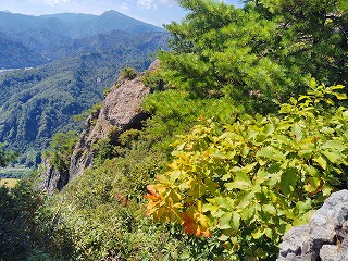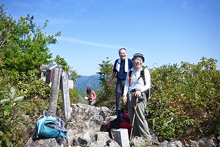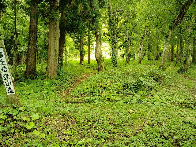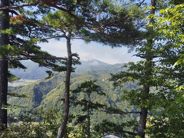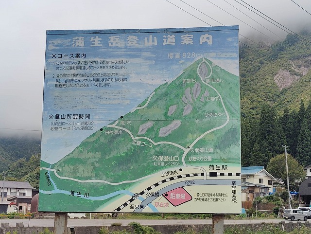 9:00 出発〜トイレ〜9:10=9:15 会津蒲生駅〜9:15 登山口〜9:25 社〜9:30 展望〜9:45 ペンキで足の置き場〜9:55=10:05 夫婦松 休憩〜