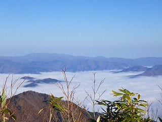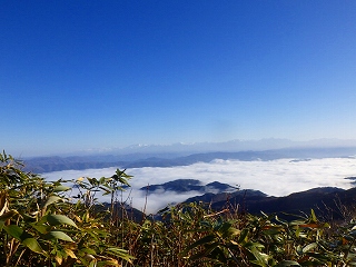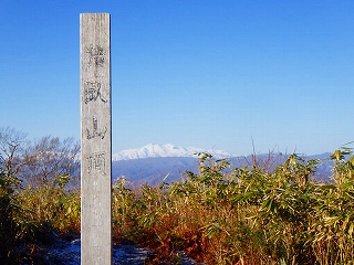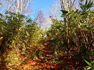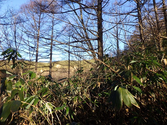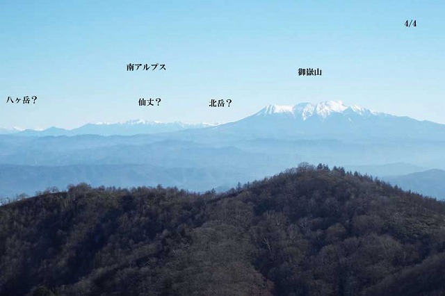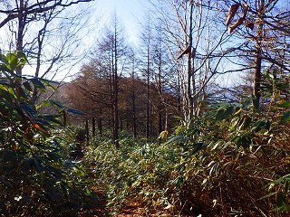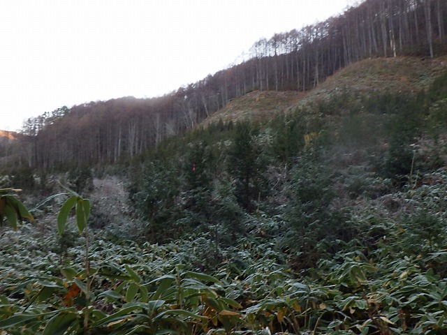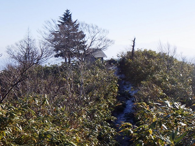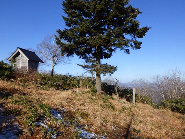 8:55=9:40 山頂 休憩~9:45 社~10:00 分岐 P1456m~10:20 登山口~渡渉~林道~渡渉~10:35=10:40 駐車場着~