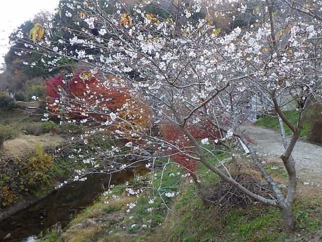 それでも充分綺麗でした 。その後 川沿いを散策 。紅葉と四季桜が見事でした。