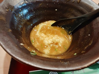 カレーうどんの上に鶏と野菜の揚げ物、下にとろろとご飯が隠れてました