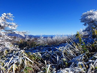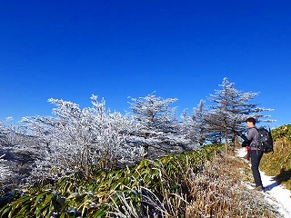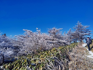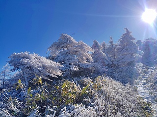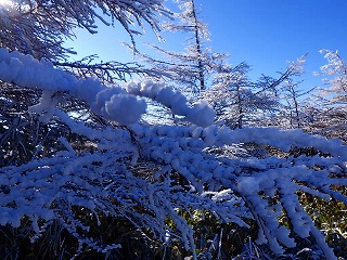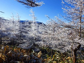 9:25 南沢山まで1q地点で樹氷が見えてきました \(^o^)/