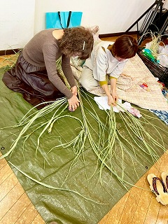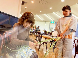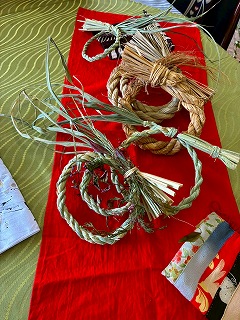 マコモのしめ縄飾りを作っり、リースをきれいに飾っていただきました。マコモの体験も、よかったです。