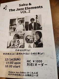 岐阜市の長良のかくれんぼまで 、平田君のSaku&TheJazzElements vol、2を