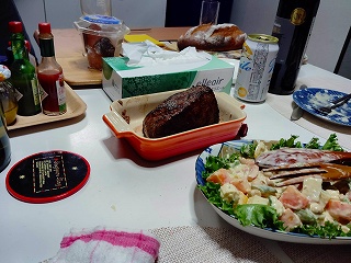 サラダとミルクとゼリーだけ食べて、残りはお持ち帰りにして、天王山で食べます