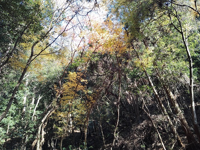 11:25 大矢田神社、出発〜11:32 楓の滝~11:38 危険の立札@~11:58 大もみじ~12:16 分岐 稜線合流~12:20=12:25 展望台~