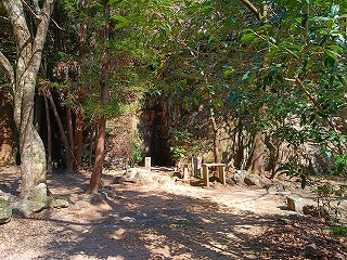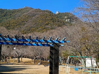 11:35 岐阜城通行止めで戻る~瞑想の小径分岐~鼻高尾根分岐~12:35 大参道登山口~12:40 妙見峠~12:45 下山~12:45=12:55 東屋 軽食~