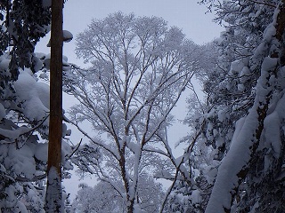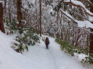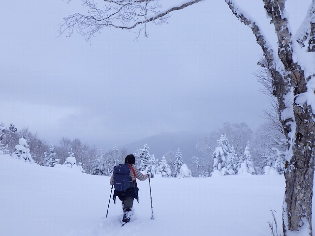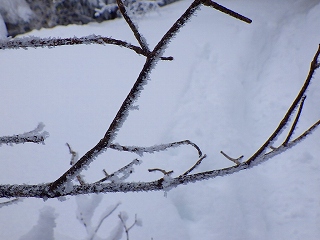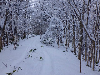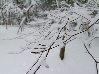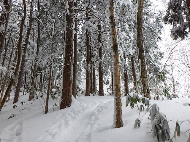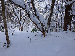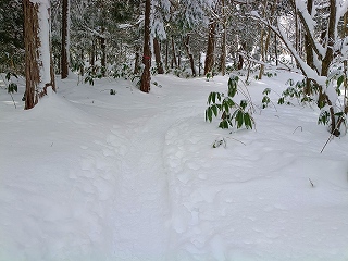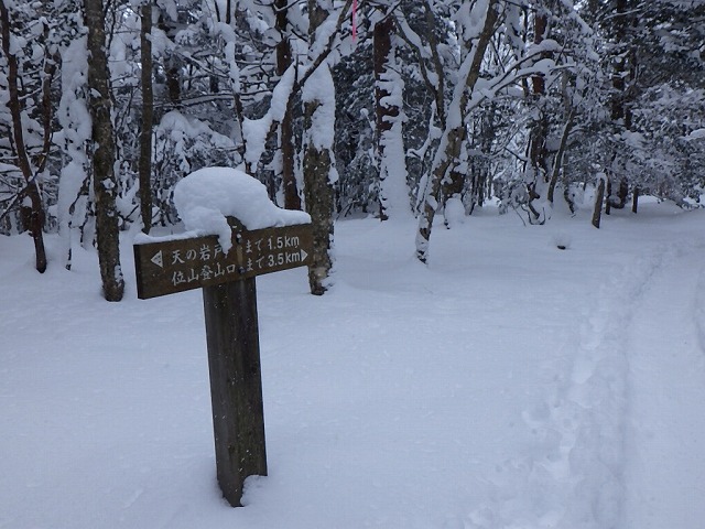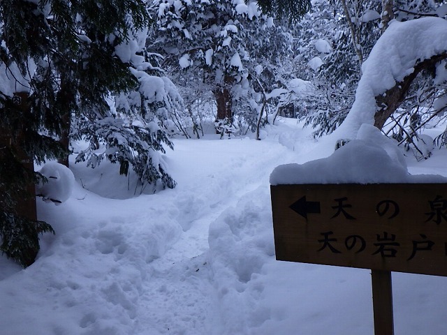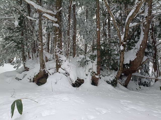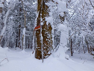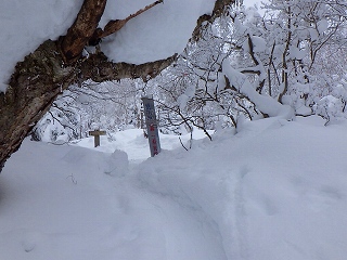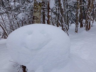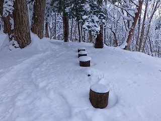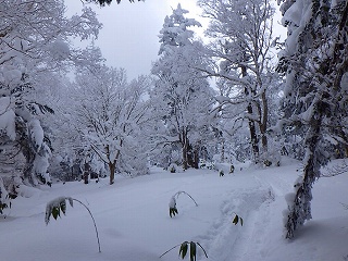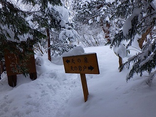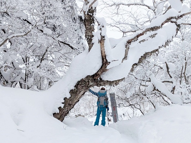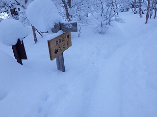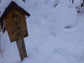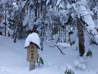 9:55 リフト乗車〜10:05=10:10 リフト駅(1150m)&スノーシュー装着〜10:10 出発〜10:15 1233m〜10:20 展望地 〜10:35 御手洗岩〜10:50 1379m〜