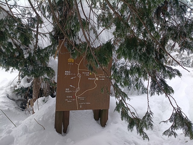 13:40 リフト駅〜14:05 分岐〜14:15 登山口〜14:20=14:30 下山届&トイレ〜14:35=14:40 モンデウス位山スキー場着〜