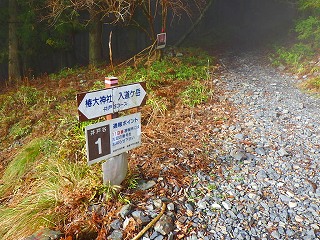 8:10 駐車場出発〜林道〜8:20 ゲート〜井戸谷@〜8:25 谷を横断〜8:25 井戸谷 A〜谷を横断〜急登〜8:35 井戸谷 B 山の神〜衣類調節 5分〜川沿いに〜ロープ場〜