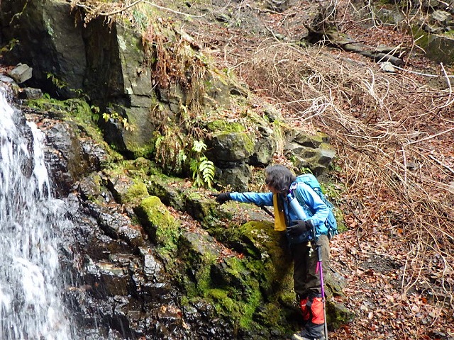 8:40 沢に〜8:45=8:50 ハナネコノメ〜8:55 花探し〜避難小屋〜9:05 井戸谷 C〜9:05 渡渉〜