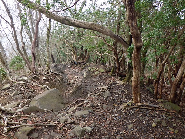 | 井戸谷駐車場〜 井戸谷登山口〜林道〜急登〜 川沿いに〜ロープ場〜笹原〜 馬酔木群落〜北の頭分岐〜 北の頭〜北尾根コース 避難小屋〜分岐〜駐車場 |