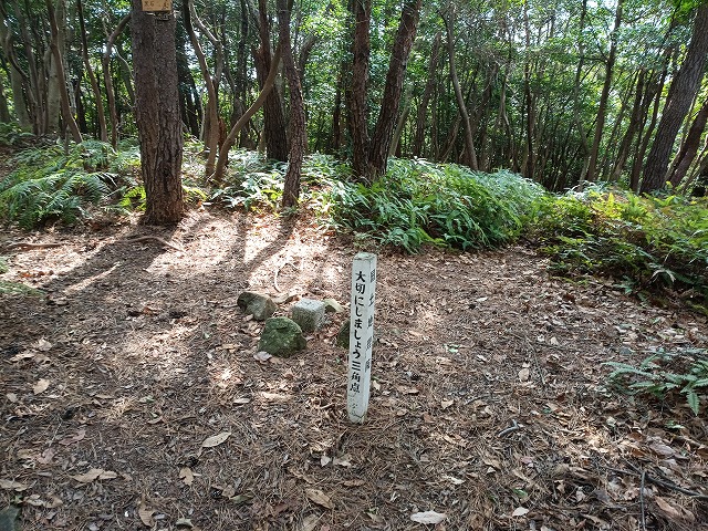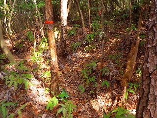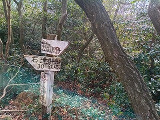 10:35 三角点 黒石~10:40 分岐~10:50 合流~11:00 分岐 石津御嶽近道に~11:10 分岐~11:17 鉄塔分岐~11:25 痩せ尾根~