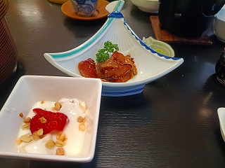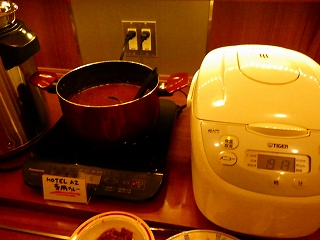 部屋に入ってすぐに夕食に