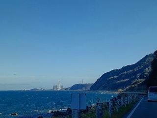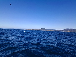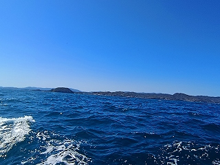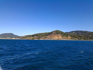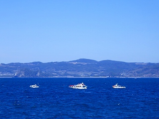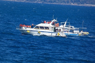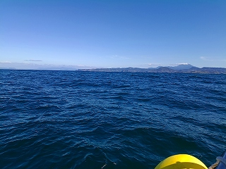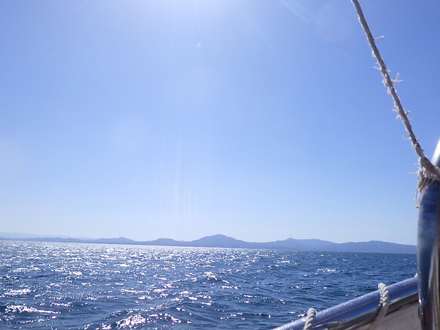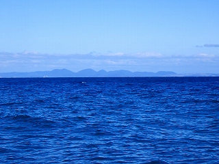 途中の八代浜海岸から、私達の次のイルカ船が、、皆さん帆先に、、イルカ居たんでしょうか??