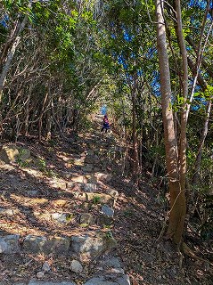 13:15=13:50 河丁 ランチ~14:45=14:50 アコウの樹 長目神社~15:20 分岐 白嶽キャンプの森入口~15:30 矢岳神社駐車場着~