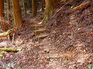 13:05 牛舎~13:10 牧場地~13:15 狛犬~13:25=13:30 二重峠 石畳の古道~13:40 湧き水 丑王水~